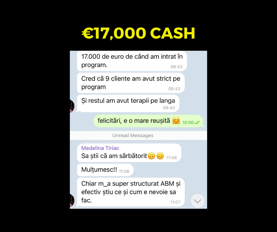 Disponibilitate crescută: Chatul special pentru întrebări și răspunsuri, disponibil de luni până vineri, îți oferă flexibilitate și acces la informații când ai nevoie. Bucură-te de sfaturi și îndrumare fără să aștepți următoarea sesiune.