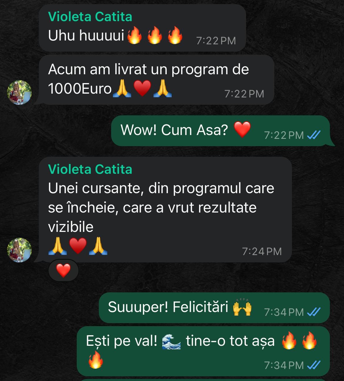Scrie-mi un mesaj pe Whatsapp cu întrebările tale. Nu amâna. În scurt timp, oferta se încheie și pierzi bonusurile speciale.
