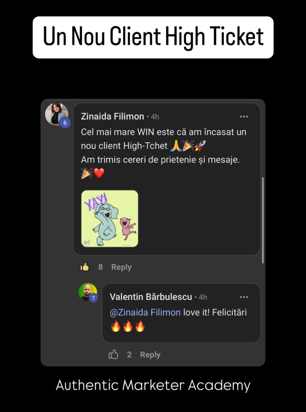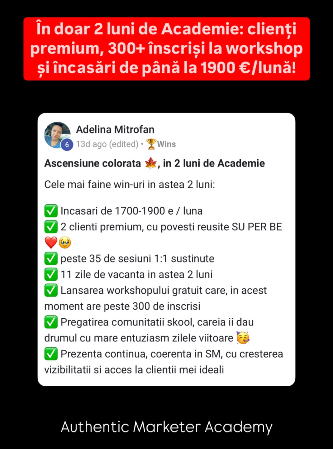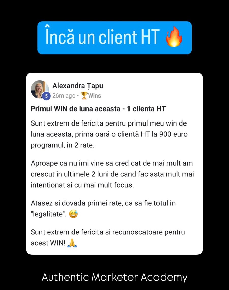 🙌 Acces exclusiv la Comunitatea Authentic Marketer – un spațiu activ, curat și focusat, alături de oameni ca tine.
