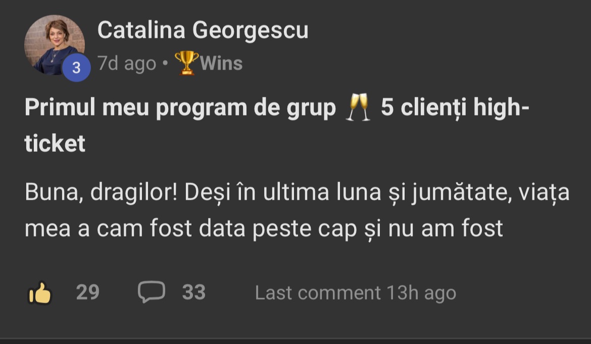 ✅ Ai înțeles că nu mai ai nevoie de încă un curs, ci de aplicare și sprijinul real al unei comunități.